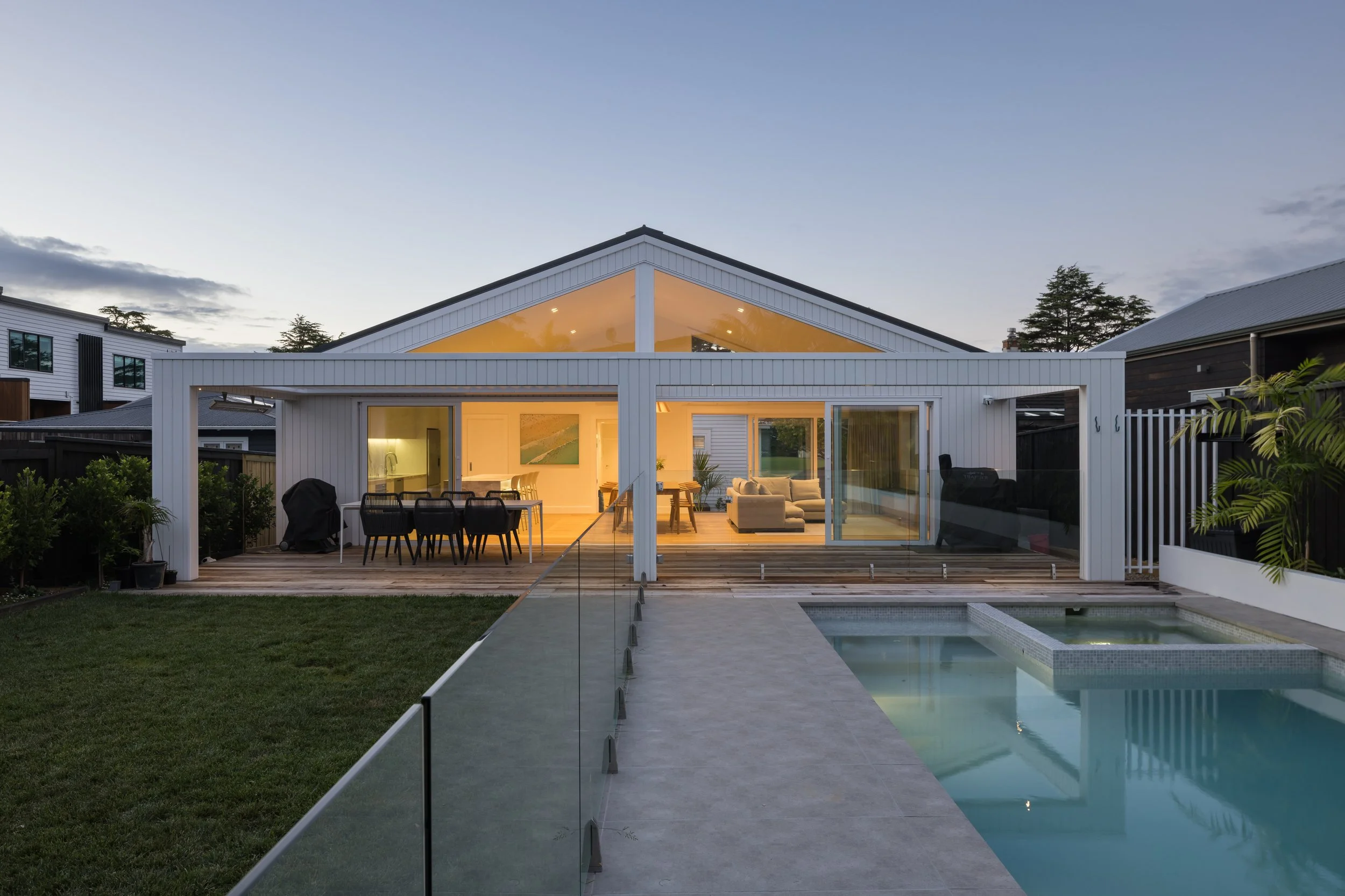 This four-bedroom villa renovation for a professional family in Pt Chevalier, one of Auckland’s central suburbs, was completed within 6 months from earthworks to handing over the keys. The project included a 72sqm open-plan living extension, along with a new pool, spa, and pool house.